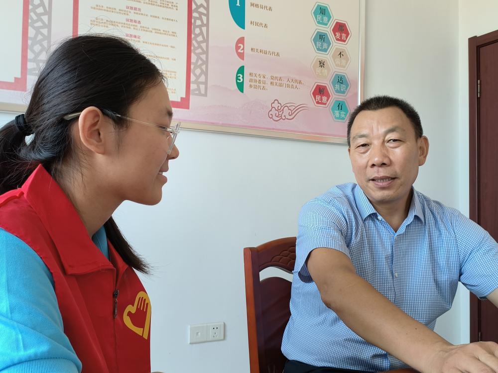 李秋慧對村主任雷如興進(jìn)行訪談(圖 朱雨馨)