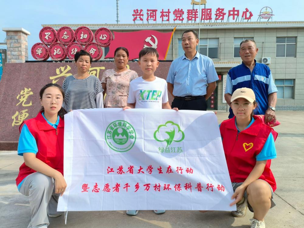 8月6日,小分隊(duì)沿著新通揚(yáng)運(yùn)河順流而下來到了郭村鎮(zhèn)興河村以及吳橋鎮(zhèn)王河村進(jìn)行調(diào)研和宣傳;顒娱_始前,成員李秋慧和朱雨馨向村主任雷如興了解了興河村近年來水質(zhì)治理情況以及河長制實(shí)施情況,并且為參與宣講的村民們發(fā)放了宣傳讀物、明信片和水龍頭起泡器實(shí)驗(yàn)材料。