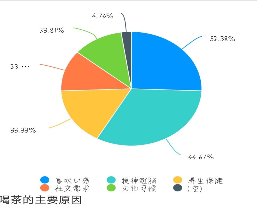 在喝茶原因方面,數(shù)據(jù)呈現(xiàn)出多元的特點(diǎn)。其中,“提神醒腦”和“喜歡口感”這兩項(xiàng)占比相對突出,成為多數(shù)人飲茶的主要驅(qū)動力。此外,選擇“養(yǎng)生保健”的受訪者也不在少數(shù),反映出隨著健康意識的提升,茶所蘊(yùn)含的養(yǎng)生價值逐漸被關(guān)注;因“社交需求”而喝茶的情況,常見于親友相聚、商務(wù)洽談等場景,茶成為了溝通情感、促進(jìn)交流的媒介;還有部分人因“文化習(xí)慣”堅持飲茶,這與家庭熏陶、地域傳統(tǒng)等因素密切相關(guān),展現(xiàn)了茶文化在日常生活中的滲透。