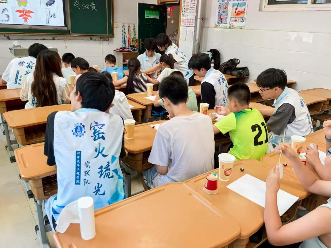 第四天上午,實(shí)踐隊(duì)來到張店鐵路小學(xué)。隊(duì)員們化身“小老師”,向孩子們生動(dòng)地講解了琉璃的歷史、工藝以及魯派內(nèi)畫的奇妙之處。孩子們聽得津津有味,對(duì)琉璃藝術(shù)充滿了好奇。在隊(duì)員們的指導(dǎo)下,孩子們還嘗試了魯派內(nèi)畫,雖然畫得略顯稚嫩,但每一幅作品都充滿了童真與創(chuàng)意;顒(dòng)最后,隊(duì)員們?yōu)楹⒆觽儼l(fā)放了琉璃小制品作為獎(jiǎng)勵(lì),鼓勵(lì)他們繼續(xù)探索琉璃藝術(shù)的奧秘。