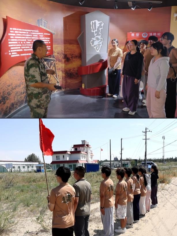 在北沙窩民兵哨所,成員們跟隨民兵登上瞭望塔觀察界碑,聽他們講述“每天巡邏不輟、哨所種菜自給”的日常。“守邊固防是職責(zé),自力更生是本領(lǐng)”的樸素話語,讓大家對“戍邊”有了更立體的理解。臨別前,實踐團在哨所前列隊重溫入黨誓詞,將這份震撼與感動深深鐫刻在心中。