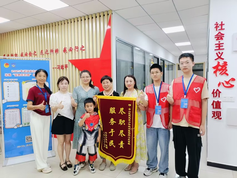 在暑期托管期間,科苑社區(qū)收到家長贈送的錦旗。“盡職盡責(zé),服務(wù)于民”這既是對社區(qū)工作的肯定,也是對志愿者們的莫大鼓勵,一面錦旗,是家長沉甸甸的認(rèn)可;一份堅守,是志愿者們不變的熱忱。