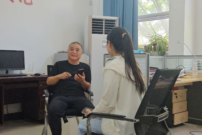 圖二為調(diào)研團(tuán)采訪非遺體育老師蘭進(jìn)平(李逸安攝)