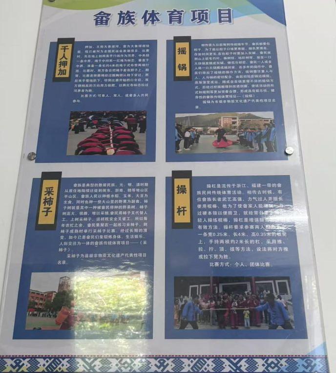 在此次采訪中,我們了解到景寧民族中學(xué)的下午課程以美術(shù)、體育等活動(dòng)為核心,按周分段輪流開展。這些課程不僅是學(xué)校自主打造的特色項(xiàng)目,更入選浙江省優(yōu)質(zhì)課程。據(jù)蘭進(jìn)平老師介紹,課程相關(guān)資料累計(jì)達(dá) 9 萬(wàn)多字,其中省級(jí)精品課程教材、武術(shù)教材等已印刷 5000 多本,早已分發(fā)落實(shí);涉及足球、民族體育裁判法與競(jìng)賽法的資料也在推進(jìn)中, “民族傳統(tǒng)體育課程有民族性、娛樂(lè)性、建設(shè)性、競(jìng)技性四個(gè)鮮明特質(zhì)。” 蘭進(jìn)平老師強(qiáng)調(diào),課程設(shè)計(jì)旨在讓學(xué)生傳承多元文化 —— 借鑒現(xiàn)如今蒙古族的蒙古摔跤、新疆的叼羊等其他民族的經(jīng)典項(xiàng)目,本地從生產(chǎn)勞動(dòng)中衍生的 “采柿子”“趕野豬” 等,這些項(xiàng)目模仿古代狩獵場(chǎng)景,融合民俗特色,成為連接民族歷史與現(xiàn)實(shí)的紐帶。