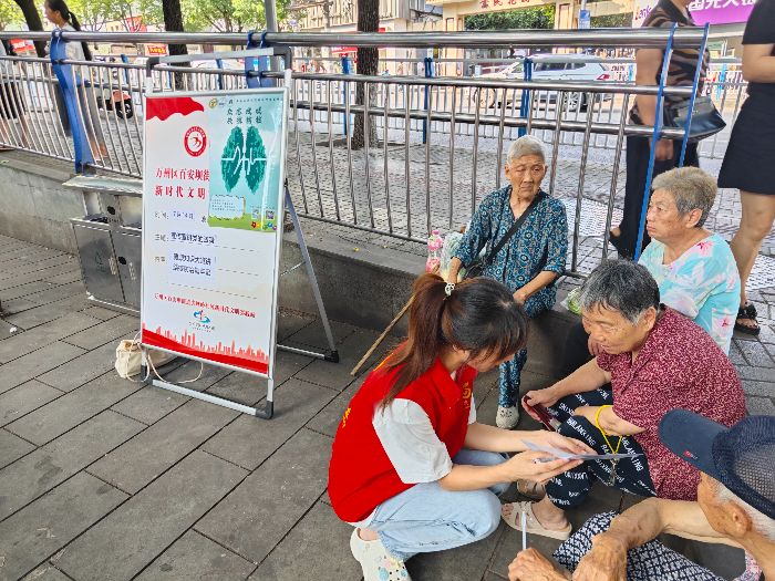 7 月15日,東大外院結(jié)核防治宣講團成員張文敏來到江蘇省鎮(zhèn)江市,在京口區(qū)正東路街道和江蘇大學(xué)后街開展宣講活動。她先走訪了正東路街道辦事處,與工作人員溝通后,在街道附近向居民進行宣傳。成員們向過往居民發(fā)放精心制作的《結(jié)核防治知識三折頁》,面對面向大家講解結(jié)核病的傳播途徑、典型癥狀以及預(yù)防措施。
