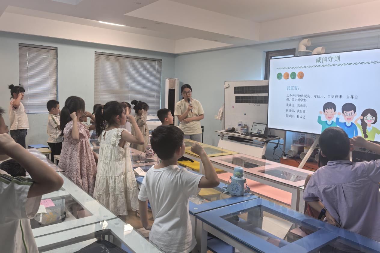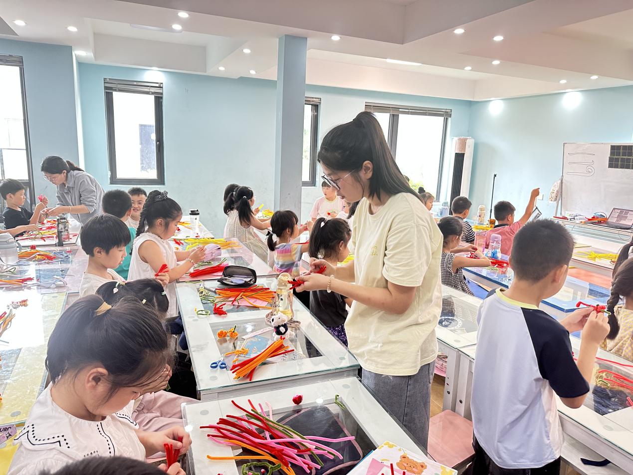 綜合實踐板塊涵蓋手工制作、趣味體育、傳統(tǒng)工藝體驗及文化素養(yǎng)培育等多元內(nèi)容。手工課上,隊員陪著孩子們捏制黏土、創(chuàng)作小擺件;運動場上,帶領(lǐng)大家開展團隊協(xié)作游戲與體能訓練;傳統(tǒng)工藝課中,細致講解扎染、剪紙等技藝的歷史淵源與操作步驟;文化素養(yǎng)課堂里,通過故事分享、小組討論傳遞美德與責任意識。隊員們?nèi)膛惆橹笇В⒆觽冊趧邮謱嵺`與團隊互動中錘煉技能、涵養(yǎng)品格,歡聲笑語里滿是身心全面成長的印記。