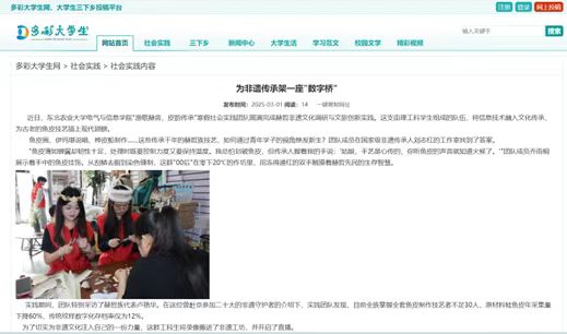 此外,團(tuán)隊(duì)還積極向中國(guó)日?qǐng)?bào)、多彩大學(xué)生、三下鄉(xiāng)網(wǎng)等網(wǎng)站投稿,發(fā)表文章,讓更多的人能夠領(lǐng)略赫哲族深刻的文化底蘊(yùn)。通過(guò)這些宣傳渠道,“錦鄉(xiāng)赫韻”社會(huì)實(shí)踐團(tuán)為非遺傳承注入了源源不斷的青春活力,讓赫哲族非遺文化在新時(shí)代煥發(fā)出新的光彩。