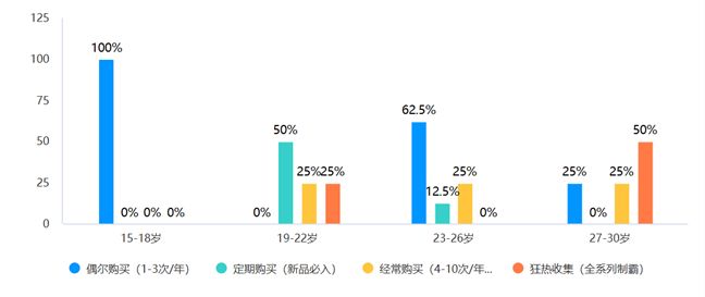 圖2-不同年齡段消費(fèi)者購買頻次