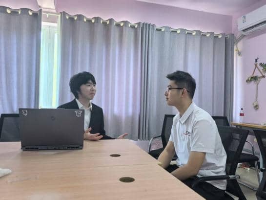 圖為實踐隊員采訪公司工作人員。吳思孜 供圖
