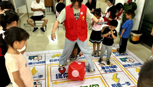我們以飛行棋大富翁的形式,將棋盤(pán)格設(shè)置成“禁毒知識(shí)小問(wèn)答”“禁毒標(biāo)語(yǔ)宣讀”等不同形式關(guān)卡。在活動(dòng)過(guò)程中,小朋友們通過(guò)擲骰子前進(jìn),遇到關(guān)卡時(shí),需要小朋友們能夠結(jié)合前面我們的理論宣講來(lái)回答問(wèn)題,這樣既能學(xué)習(xí)新知識(shí),又能復(fù)習(xí)鞏固。例如,“開(kāi)心水是傳統(tǒng)毒品還是新型毒品?”、毒品會(huì)直接作用人的什么部位?”等各類(lèi)關(guān)于毒品的小知識(shí)。