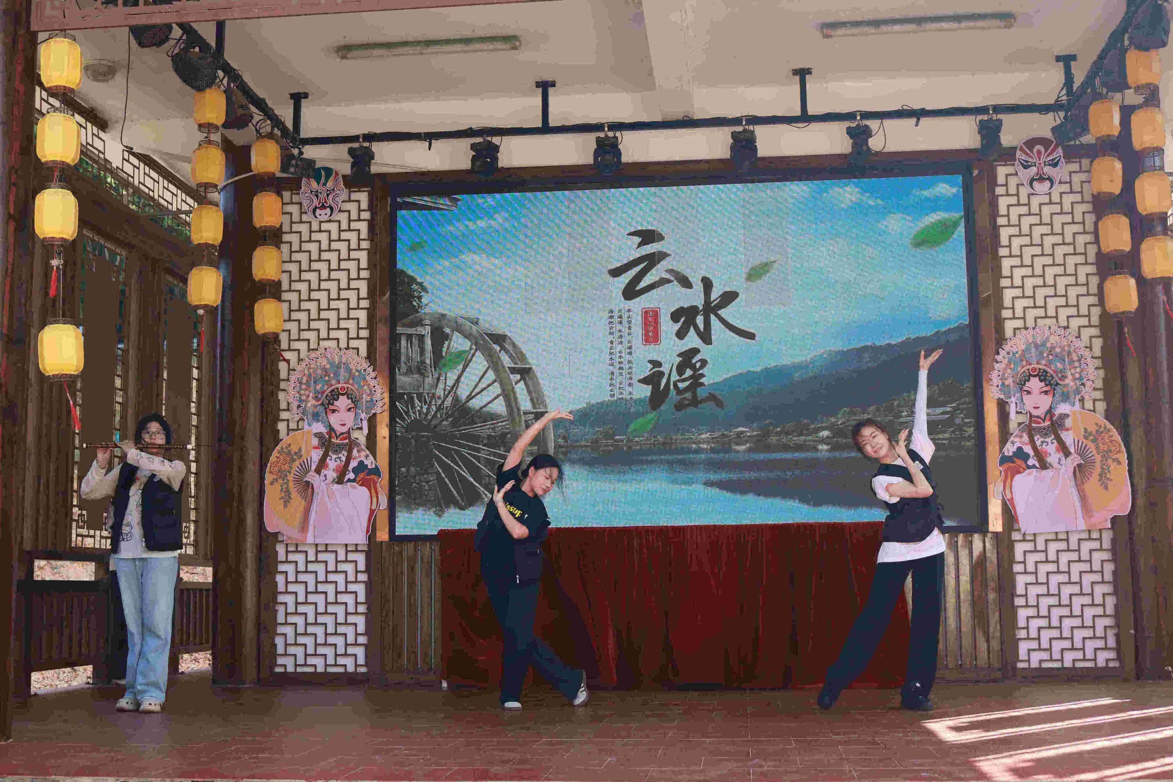 傍晚時分,“藝韻流芳”實踐隊走進云水謠古村落,在充滿歷史韻味的戲臺上,為當?shù)鼐用窈陀慰蛶砹艘粓鋈诤衔璧、唱歌、竹笛演奏的精彩表演,以藝術之美傳遞青春力量,在古村的青磚黛瓦間奏響新時代的文化樂章。