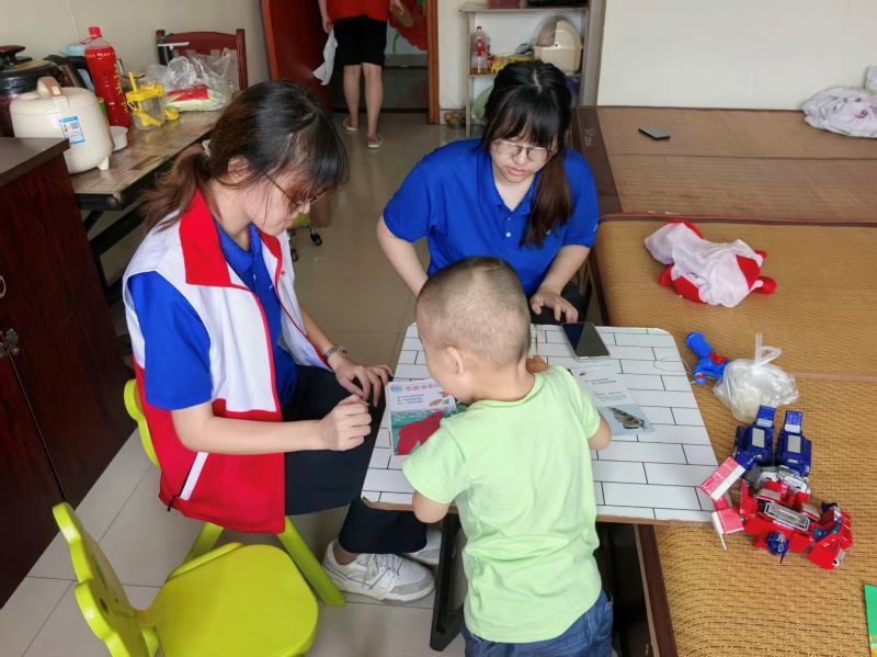 實踐團開展特色入戶課程,考慮到基地兒童情況各異,在系統(tǒng)掌握受助兒童身體狀況、學(xué)習(xí)能力等基礎(chǔ)信息后,采用靈活的教學(xué)方式。同時,組織開展輔助站立訓(xùn)練,實現(xiàn)康復(fù)訓(xùn)練與基礎(chǔ)教育的有機結(jié)合。實踐過程中,成員通過通俗易懂的語言講解知識,引導(dǎo)兒童在輕松氛圍中參與學(xué)習(xí),激發(fā)認知興趣。
