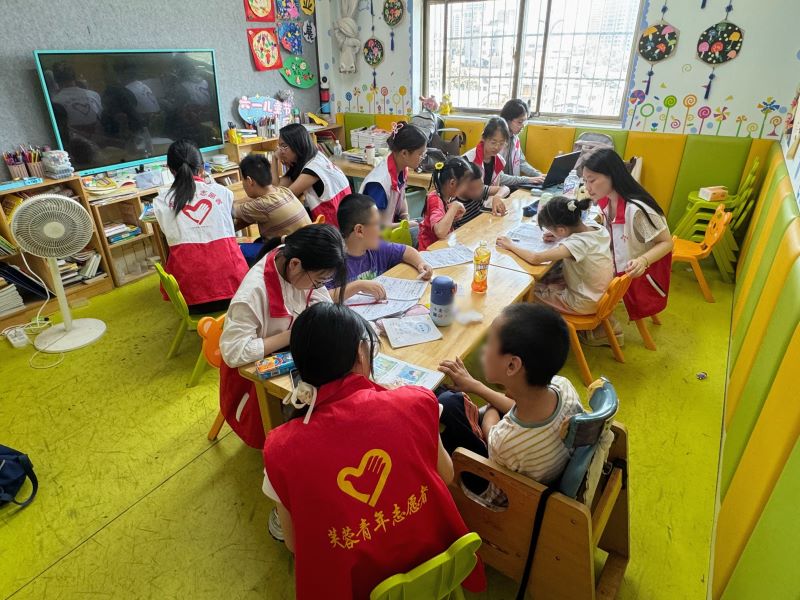 實踐團特別設(shè)計了兼具趣味性與適應(yīng)性的繪畫課程。通過水彩、蠟筆等創(chuàng)作媒介,引導(dǎo)兒童在藝術(shù)表達中鍛煉手部精細動作能力,同時激發(fā)創(chuàng)造潛能。這種非語言表達方式為孩子們提供了情感宣泄的窗口,有助于孩子們表達內(nèi)心世界和改善溝通能力。