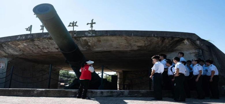 。▓D為“赤旗領(lǐng)航”實(shí)踐隊(duì)在觀看克虜伯巨炮 通訊員裴李卓軒供圖)