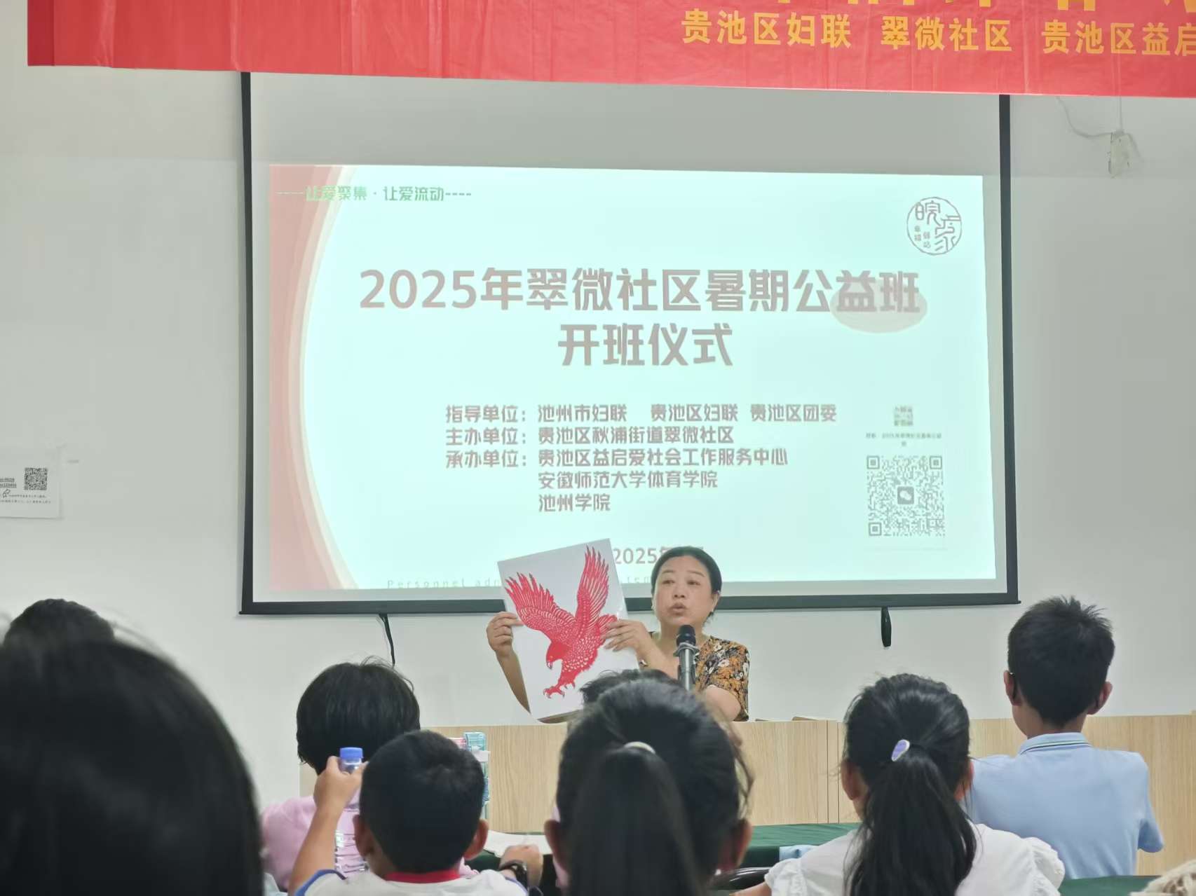 為助力社區(qū)發(fā)展,關(guān)愛兒童成長,2025年7月5日,翠微社區(qū) “皖家幸福驛站” 系列活動暨大學(xué)生暑期三下鄉(xiāng)開班儀式在社區(qū)活動場地正式啟動。此次活動由翠微社區(qū)、貴池區(qū)益啟愛社會工作服務(wù)中心、赴池州市翠微社區(qū)志愿服務(wù)實踐團聯(lián)合開展,吸引眾多社區(qū)兒童及大學(xué)生志愿者參與。