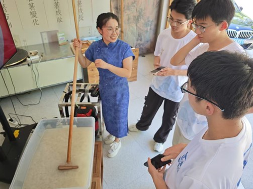 實(shí)踐隊(duì)的第二段旅途深度體驗(yàn)了非遺連史紙制作。從抄紙、吸水、晾曬,每道工序都凝結(jié)著匠人的心血。指尖觸碰竹簾撈起薄薄紙漿的瞬間,真切感受到傳統(tǒng)技藝的質(zhì)樸與精妙。連史紙質(zhì)地細(xì)膩、防蟲耐久,承載著千年文脈。在快節(jié)奏的時(shí)代,親手完成一張紙的誕生,不僅體會(huì)到古法造紙的智慧,更在慢工細(xì)活中,觸摸到了傳統(tǒng)文化的溫度,收獲了一份難得的沉靜與匠心感悟。