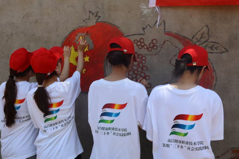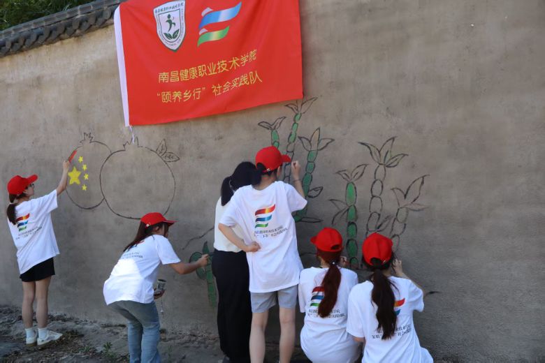 筆墨傳岐黃 彩繪潤?quán)l(xiāng)土:南昌健康職業(yè)技術(shù)學(xué)院學(xué)子三下鄉(xiāng)以中草藥墻繪提升文化自信
