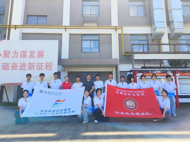 圖為“愛潤童心·智慧啟航”暑期“三下鄉(xiāng)”實(shí)踐團(tuán)隊(duì)與安徽省針灸醫(yī)院針承志愿服務(wù)隊(duì)合影留念。曹秋實(shí) 攝