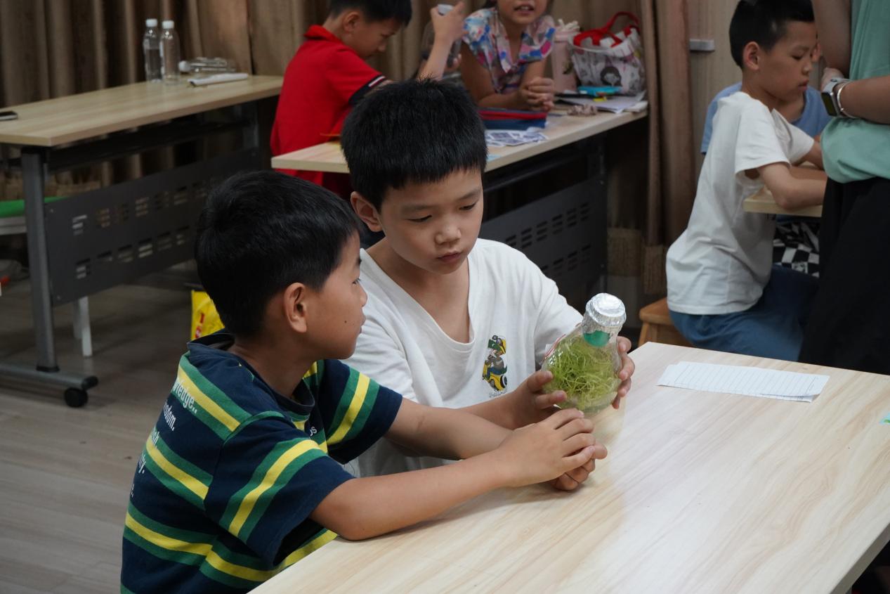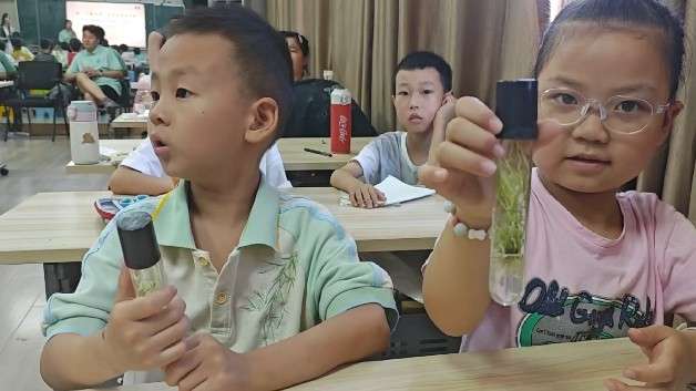 在孩子們對竹子組織培養(yǎng)的奧秘充滿驚嘆時,實踐團成員又拋出新的驚喜:“你們知道嗎?竹子也有自己的‘試管嬰兒’!”隨著這一句充滿懸念的話語,拿出試管嬰兒的模型樣品,讓小朋友們近距離觀看。“我知道!這也是無性繁殖!”“是不是和竹子組培一樣,都能快速生出好多‘寶寶’?”小朋友們高舉的小手如雨后春筍般林立,爭先恐后地搶答,眼中閃爍著求知的光芒。