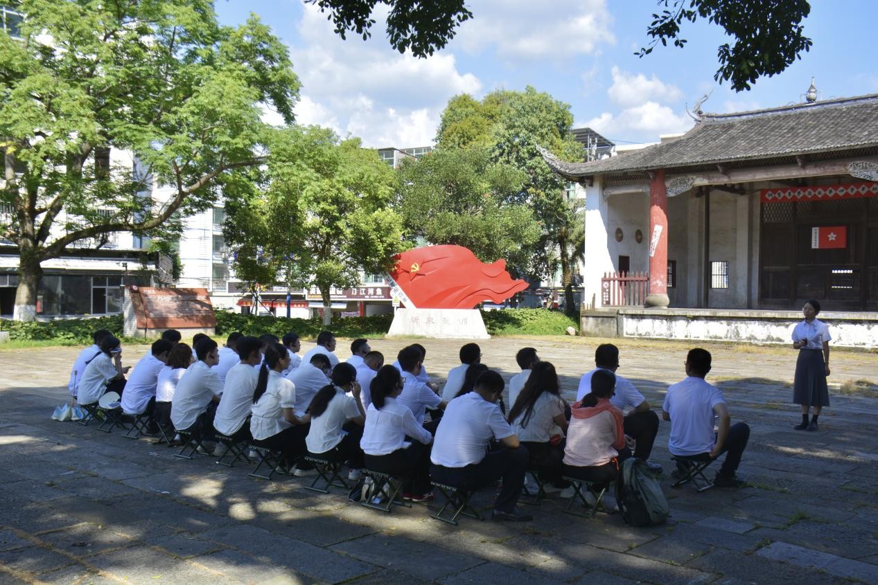 (圖為縣委黨校教師沈曉娟在新泉整訓(xùn)遺址群前專題授課通訊員羅雯露供圖)