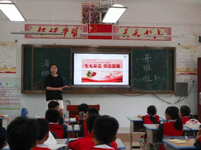 海椰志愿服務(wù)隊組織孩子們觀看了一部反映抗日戰(zhàn)爭的紀(jì)錄片。紀(jì)錄片生動再現(xiàn)了“七七事變”的爆發(fā)及人民在抗日戰(zhàn)爭中的英勇事跡;顒蝇F(xiàn)場,孩子們通過鏡頭直觀感受 1937 年盧溝橋畔的硝煙戰(zhàn)火,紀(jì)錄片以真實影像與史料,生動再現(xiàn)了七七事變爆發(fā)時日軍的挑釁行徑,以及中國駐軍第二十九軍奮起抵抗的英勇場景。