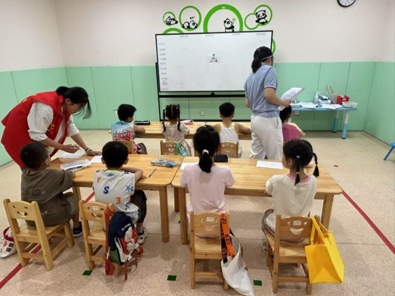 在教學(xué)過程中,實踐隊員積極配合專業(yè)教師開展課堂活動。根據(jù)教學(xué)進(jìn)度和兒童個體需求,隊員們適時提供必要的輔助支持,包括動作示范、語言提示和正向鼓勵等。在教師主導(dǎo)下,隊員們協(xié)助維持良好的教學(xué)秩序,通過引導(dǎo)幫助兒童參與各項學(xué)習(xí)活動,確保實現(xiàn)教學(xué)目標(biāo)。