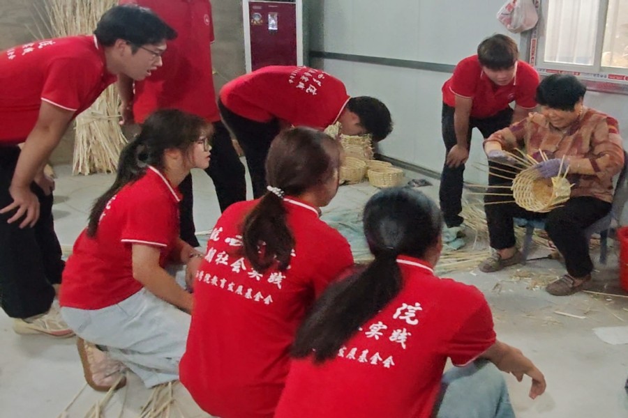 7月4日上午,實踐團走進“中國柳編之都”黃崗鎮(zhèn),深入柳編產(chǎn)業(yè)一線調(diào)研。師生們實地考察杞柳種植園、原料蒸煮車間及編織工坊,與柳編藝人深入交流。藝人們詳細講解選材、蒸煮軟化等關鍵工序,并現(xiàn)場演示“挑一壓一”“纏邊”等核心技法。一位藝人分享道:“在家早晚能帶娃,送娃上學后來做工,中午還管飯!家門口有活干、能顧家,日均增收80多元,很滿足。”在師傅指導下,隊員們親手嘗試編織,零距離感受國家級非遺黃崗柳編的匠心魅力,深入思考非遺文化在鄉(xiāng)村振興中的獨特價值與創(chuàng)新發(fā)展路徑。