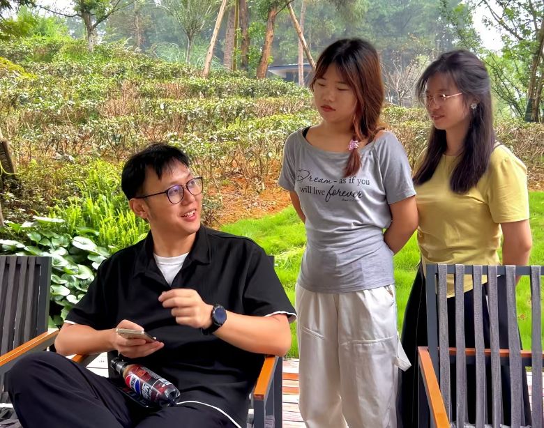 實(shí)踐隊次日深入田園生態(tài)商務(wù)區(qū)內(nèi)部,對數(shù)字游民、在地工作人員及周邊居民展開問卷調(diào)研與訪談。其中一位創(chuàng)業(yè)者談到選擇成都(蒲江)國際田園生態(tài)商務(wù)區(qū)的原因:“區(qū)別于傳統(tǒng)鋼筋水泥的CBD,這里能讓我在綠意環(huán)繞中專注創(chuàng)作。”他的經(jīng)歷,印證了相關(guān)負(fù)責(zé)人所強(qiáng)調(diào)的生態(tài)與區(qū)位疊加優(yōu)勢。