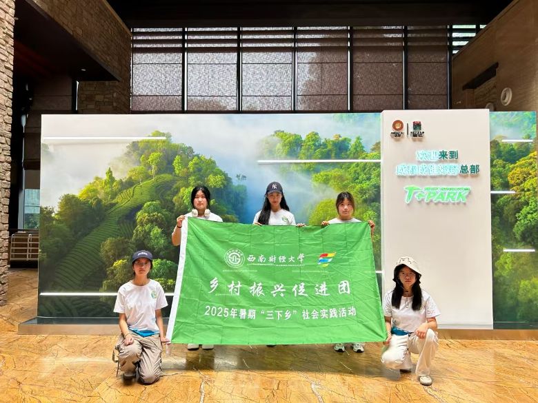 圖為西南財經(jīng)大學(xué)財智數(shù)棲實(shí)踐隊在田園生態(tài)商務(wù)區(qū)調(diào)研后合影。黎明揚(yáng) 攝