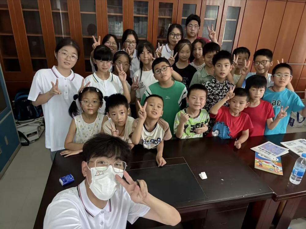實驗后,志愿者向小朋友們開展化學(xué)知識講座和心理講座,在為小朋友們講解化學(xué)知識的同時也為小朋友們疏通心理,讓小朋友們有一個開心快樂的童年。很快,夕陽西沉,活動進入尾聲。孩子們與志愿者圍坐,相機快門響起,笑臉在鏡頭前綻放。錄制互動視頻時,有孩子分享:“我以后想當(dāng)科學(xué)家,做更多好玩的實驗!” 志愿者們欣慰微笑,他們知道,科學(xué)的火種已點亮。這些畫面里,有孩子收獲知識的喜悅,有志愿者付出的滿足,溫暖與希望,隨晚風(fēng)吹向槐林鎮(zhèn)的每一個角落。