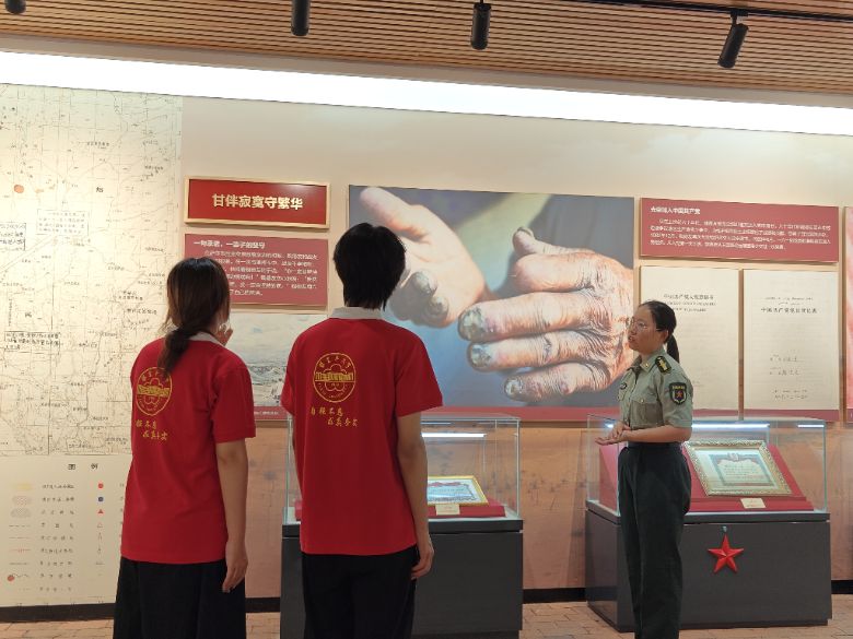 活動(dòng)期間,實(shí)踐團(tuán)成員們首先參觀了魏德友戍邊事跡展覽館。館內(nèi)陳列的望遠(yuǎn)鏡、軍用水壺、戍邊日記等實(shí)物,守著孤寂蒼茫戈壁,魏德友走過(guò)了整整一個(gè)甲子。據(jù)講解員介紹,自1964年轉(zhuǎn)業(yè)以來(lái),魏德友累計(jì)巡邊里程達(dá)20萬(wàn)公里,這些展品成為其“用腳步丈量國(guó)土”的見(jiàn)證。塔里木大學(xué)方馨在參觀后表示,這些展品讓她深刻感受到這是一位心中有信仰,肩上有使命,眼里有光芒,腳下有力量的英雄。