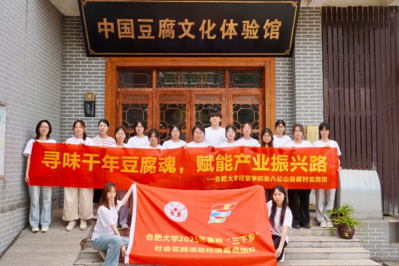 為深入探究淮南市八公山鄉(xiāng)村豆腐產(chǎn)業(yè)的發(fā)展現(xiàn)狀,剖析傳統(tǒng)工藝與現(xiàn)代科技的融合路徑,引導(dǎo)社會(huì)聚焦豆腐產(chǎn)業(yè)可持續(xù)發(fā)展這一關(guān)鍵議題,為鄉(xiāng)村振興注入新動(dòng)力,合肥大學(xué)經(jīng)濟(jì)與管理學(xué)院“合啟淮章”團(tuán)隊(duì)于2025年6月29日前往奔赴淮南市壽縣八公山鄉(xiāng),開展了一場意義非凡的學(xué)習(xí)調(diào)研之旅。團(tuán)隊(duì)成員們先后走進(jìn)中國豆腐村、豆腐主題文化園、淮南王劉安墓以及珍珠泉等地,全方位、沉浸式地探尋豆腐文化的根源與魅力。