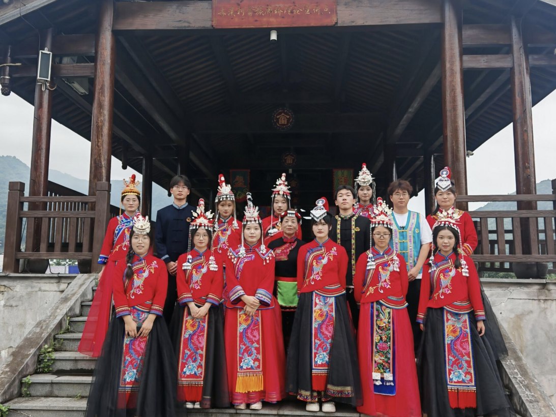 圖為實(shí)踐隊(duì)隊(duì)員集體身著畬服與鐘月華老師的合影 何艷 供圖