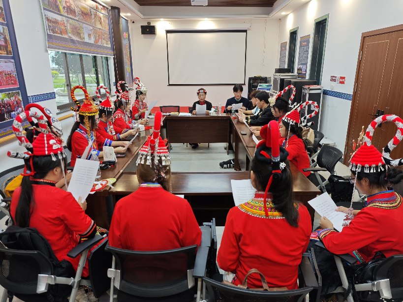 身著繡有象征祥瑞的鳳凰紋樣、染著花卉圖案的畬族傳統(tǒng)服飾,實(shí)踐隊(duì)隊(duì)員們跟隨鐘老師逐字逐句學(xué)唱以“感恩”為主題的畬歌。反復(fù)吟唱間,指尖摩挲著畬服刺繡的細(xì)膩紋理,隊(duì)員們沉浸式觸摸到畬族文化的獨(dú)特魅力。從服飾紋樣、歌曲韻律里,拼湊出對(duì)畬族文化更鮮活的認(rèn)知,同時(shí),歌聲里滿溢的畬族人民對(duì)黨的感恩之情,也讓隊(duì)員們更深刻體會(huì)到“黨帶領(lǐng)人民過上好日子”的真切內(nèi)涵。