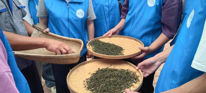 夏日的清晨,帶著露水的鮮葉從茶樹上被采摘下來,開啟了一段從青澀到醇厚的蛻變。制茶工坊里,傳承百年的制茶工藝正有條不紊地進行,攤晾、殺青、揉捻、干燥,四步工序環(huán)環(huán)相扣,每一步都是制茶師傅們的匠心所致。為進一步了解有關制茶工藝的流程,7月18日,濃“農(nóng)”深情,“鄉(xiāng)”約振興實踐團,來到瑞草園親身體驗中國傳統(tǒng)制茶文化的魅力。