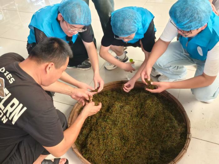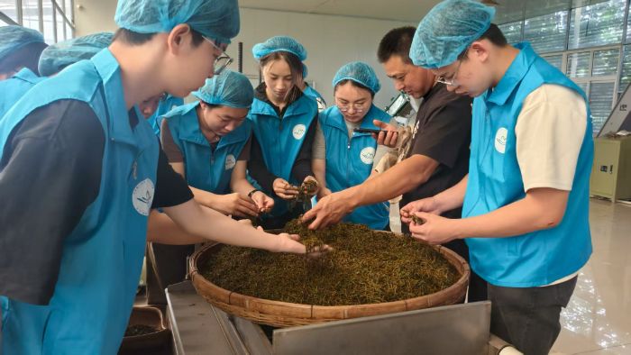 繼7月18日體驗綠茶采摘與炒制后,實踐團7月19日開始著手紅茶的制作。來到制茶車間,這里有著嚴格的衛(wèi)生條件與消殺要求,同時相較于綠茶的清雅直接,紅茶的工藝更為復(fù)雜多樣,在炒制的基礎(chǔ)之上,添入了“發(fā)酵”這一精妙的制作工藝!
