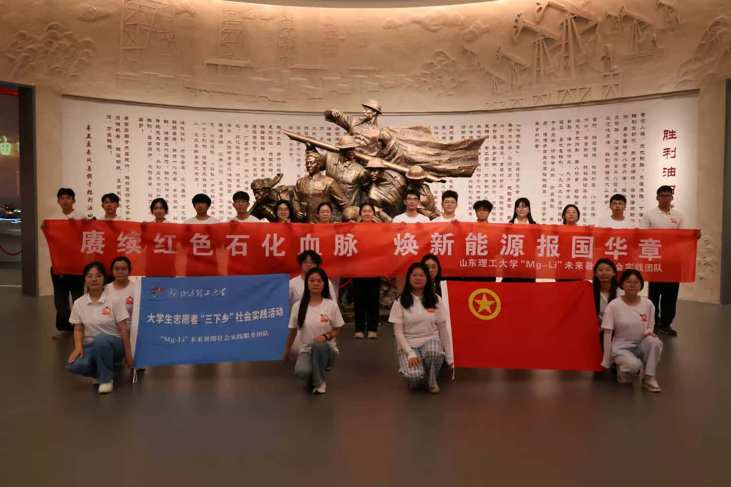 為將紅色基因與產(chǎn)業(yè)精神的深度融合,山東理工大學(xué)“Mg-Li”未來暑期社會實(shí)踐團(tuán)于7月19日走進(jìn)東營勝利油田優(yōu)良傳統(tǒng)展廳。在講解員的帶領(lǐng)下,實(shí)踐團(tuán)成員深入了解勝利油田從艱苦創(chuàng)業(yè)到創(chuàng)新發(fā)展的輝煌歷程,深刻領(lǐng)會積淀形成的優(yōu)良傳統(tǒng)與精神內(nèi)核,在參觀中感悟石油精神。