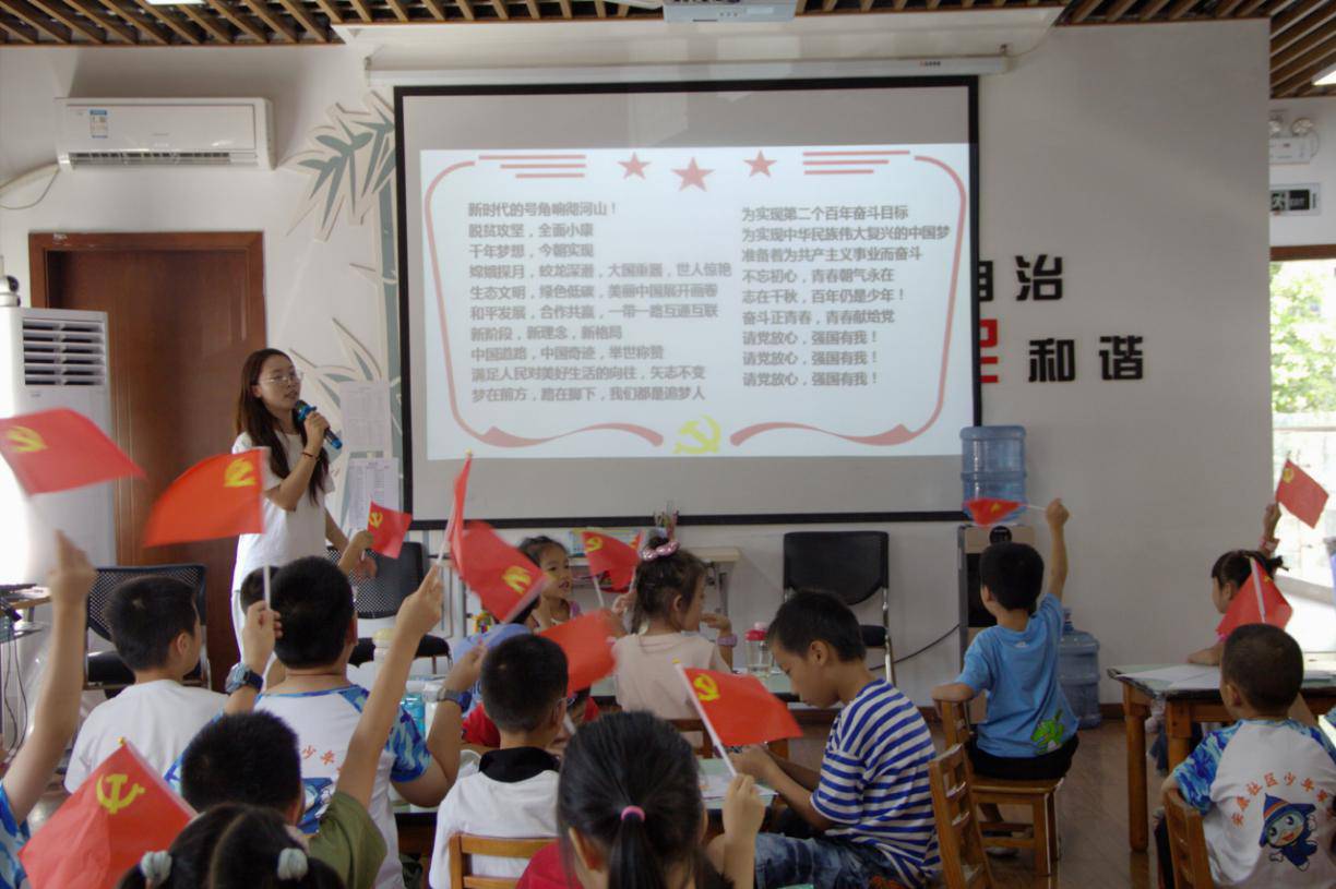 實踐團宣講員包思雨以“學(xué)黨史感黨恩當(dāng)好接班人”為主題,通過趣味互動和情感共鳴,為小朋友們帶來了一堂生動深刻、寓教于樂的愛國主義教育課,引領(lǐng)少年兒童深入回顧光輝歷程,感悟初心使命,傳承紅色基因,汲取奮進力量。