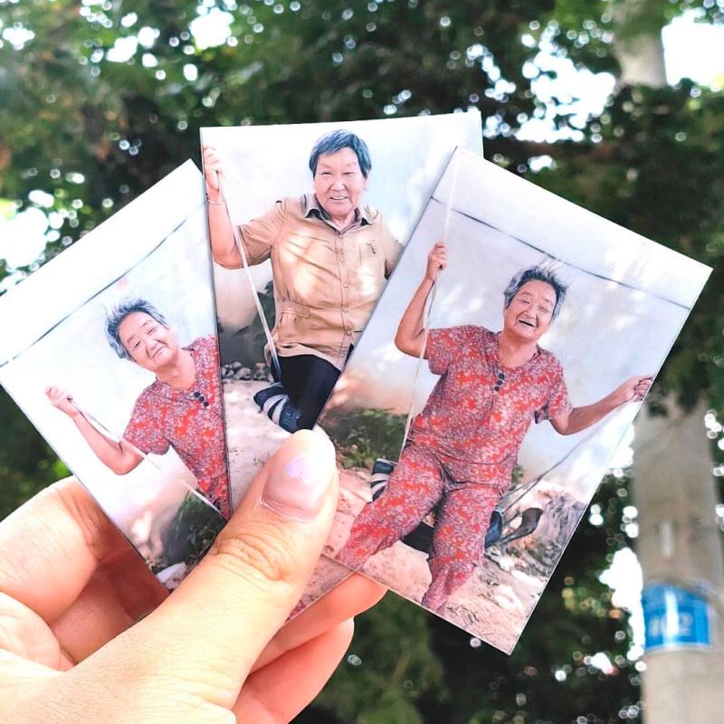 活動(dòng)當(dāng)天,隊(duì)員與村委會(huì)進(jìn)行溝通,在村委會(huì)的引導(dǎo)下走進(jìn)了這個(gè)靜謐且美好的村子,很容易的看到老人們?cè)跇湎鲁藳隽奶,我們向老人們說明來意后,村民們很高興,有秩序地等待我們?yōu)槠渑恼。團(tuán)隊(duì)成員耐心地為老人們整理衣物、梳理頭發(fā),引導(dǎo)他們擺出自然的姿勢。我們?yōu)槔夏棠檀魃习l(fā)卡,為其拍上最美的照片,仍記得老人那句“拍完照后發(fā)卡可以送我嗎?”所帶的美好與甜蜜。拍攝完成后,團(tuán)隊(duì)成員立即通過便攜式打印機(jī)將照片現(xiàn)場打印出來,送到老人手中。拿到嶄新照片的老人們愛不釋手,不停地夸贊:“這照片拍得真好,這個(gè)好看!”