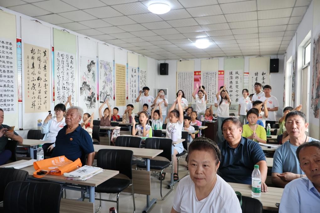 實踐團與村委會聯(lián)合開展了書法活動與授牌儀式,弘揚傳統(tǒng)文化。與此同時,楊麗萍小分隊深入村中走訪,進行問卷調(diào)查,了解村民需求,為后續(xù)公益活動積累寶貴資料。結(jié)營儀式的尾聲,稚嫩的手印在紀(jì)念冊上綻放成花,孩子們在紀(jì)念手印冊上按下彩色的手印,并簽下自己的名字。實踐團成員于欣茹、范子龍等人悉心組織,確;顒佑行蜻M行。最后,全體成員與孩子們一起拍攝了大合照,為夏令營畫上了圓滿的句號。