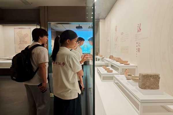 隨后,實(shí)踐團(tuán)來到弋陽縣博物館,剛進(jìn)入展館就被序廳巨幅銅板畫“在弋陽看見可愛的中國”所吸引,聚焦于其鮮明的紅色主題所象征的革命精神。在博物館講解員的引導(dǎo)與講解下,成員們重點(diǎn)學(xué)習(xí)了弋陽光輝的革命斗爭史:方志敏等革命先驅(qū)在此傳播馬克思主義火種,從領(lǐng)導(dǎo)創(chuàng)建閩浙贛革命根據(jù)地到率抗日先遣隊(duì)出征,從獄中寫下《可愛的中國》到慷慨就義的事跡,通過實(shí)物與圖文相結(jié)合的方式生動(dòng)呈現(xiàn)。實(shí)踐團(tuán)成員在相關(guān)展區(qū)前久久佇立,了解紅十軍誕生、抗日先遣隊(duì)組建等革命史實(shí),深刻感悟弋陽這片紅土地上“愛國、創(chuàng)造、清貧、奉獻(xiàn)”的精神傳承。