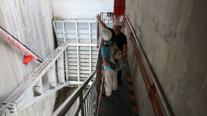 成員觀察放水閘門結(jié)構(gòu)及啟閉系統(tǒng) 宋天浩攝
