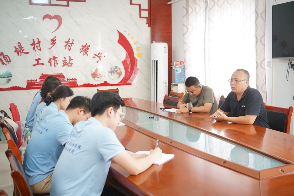 圖為實(shí)踐團(tuán)向聯(lián)通駐村負(fù)責(zé)人了解楊堤鄉(xiāng)數(shù)字化建設(shè)情況