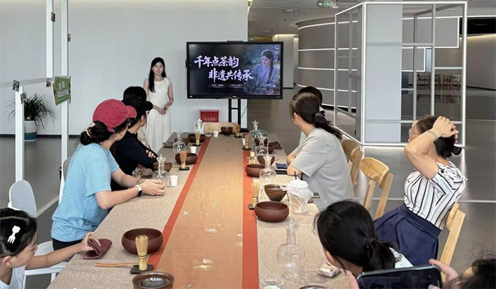 。▽W(xué)員們分組體驗(yàn)點(diǎn)茶的場景)