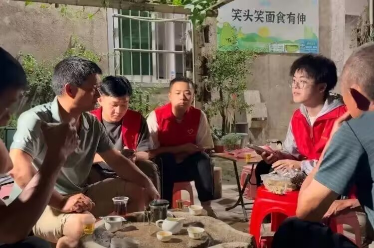 7月5日,實踐隊與軍營村當(dāng)?shù)卣ぷ魅藛T、村民圍坐暢談,在與高主任的深度訪談中,細(xì)細(xì)聆聽村莊經(jīng)濟發(fā)展的脈絡(luò)、文化傳承的故事,共同勾勒未來發(fā)展的藍(lán)圖。從探討 “褒茶營” 文化如何融入鄉(xiāng)村旅游,到分析特色茶產(chǎn)品的產(chǎn)銷瓶頸,隊員們在思想碰撞中明晰方向。
