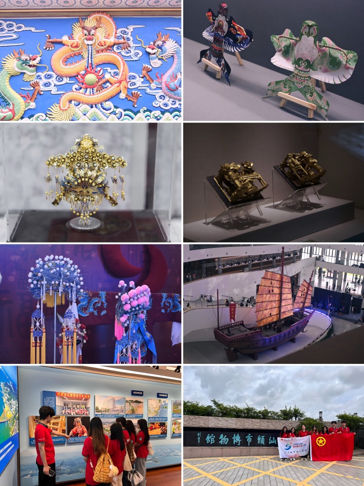 7月7日,實(shí)踐團(tuán)開啟了對潮汕地區(qū)的文化探訪以及非物質(zhì)文化遺產(chǎn)的探究活動。于汕頭文化館、小公園開埠文化陳列館、僑批文化館等場館內(nèi),泛黃的僑批書信以及復(fù)原的開埠場景,鮮活地重現(xiàn)了先輩的奮斗歷程,蘊(yùn)含著深厚的家國情懷。街區(qū)建筑中的嵌瓷、木雕等傳統(tǒng)工藝,使實(shí)踐團(tuán)體悟到“傳承不守舊,創(chuàng)新不離根”的文化智慧。在臻寶博物館、潮汕歷史文化館及飛魚風(fēng)箏館中,從潮劇服飾、民俗器具到靈動的風(fēng)箏,實(shí)踐團(tuán)全面感知到潮汕文化的多元交融以及民俗藝術(shù)的蓬勃生命力。實(shí)踐團(tuán)通過實(shí)地實(shí)踐體驗(yàn)與深入溝通交流,深刻領(lǐng)悟了非物質(zhì)文化遺產(chǎn)的歷史底蘊(yùn)與現(xiàn)代價(jià)值,進(jìn)一步激發(fā)了保護(hù)和傳承非物質(zhì)文化遺產(chǎn)的熱情。