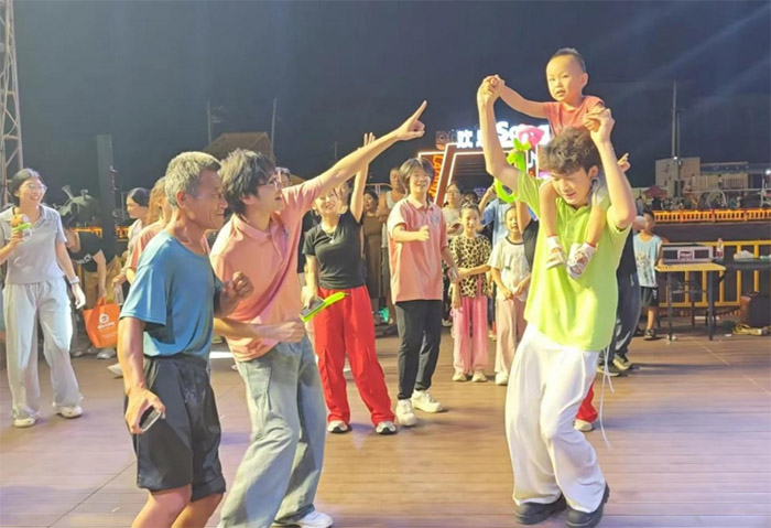 精彩的表演贏(yíng)得了村民們的陣陣掌聲,演出結(jié)束后,大家紛紛涌上舞臺(tái),與隊(duì)員們載歌載舞,歡聲笑語(yǔ)回蕩在夜空中。