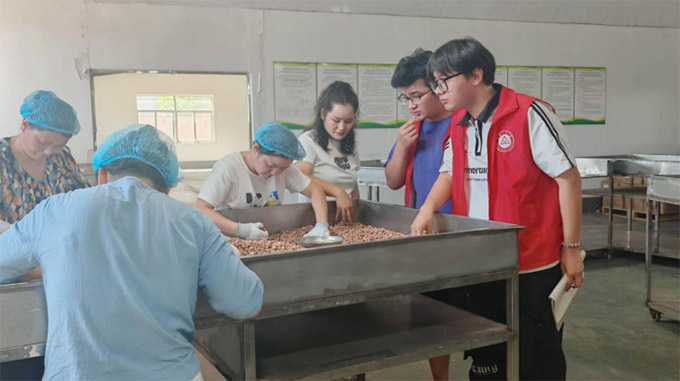 接下來,團隊還走訪了公司在嚴橋鎮(zhèn)的原料試驗田,了解不同花生米的相關(guān)知識以及公司在農(nóng)村一二三產(chǎn)業(yè)融合過程中的具體做法和面臨的困難。通過實地考察和交流,團隊成員收集了大量一手資料,為后續(xù)的分析和研究提供了有力支撐。在調(diào)研過程中,李總指出人工費和產(chǎn)量問題是目前所面臨最大的兩個困難,但她們?nèi)匀徊粫x擇去采用機器剝殼和進出普通的花生,她說:“既然我的父親把這項手藝和公司傳到我的手上,那我就要讓它在我的手中煥發(fā)新的活力。”