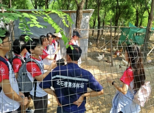 22日,夢(mèng)創(chuàng)工坊團(tuán)隊(duì)首先來(lái)到北石槽鎮(zhèn)良善莊村,并在鎮(zhèn)政府參加座談會(huì)。會(huì)上,負(fù)責(zé)人介紹了當(dāng)?shù)鼗厩闆r,并細(xì)致安排調(diào)研順序,使實(shí)踐小隊(duì)對(duì)實(shí)踐地有了初步了解。團(tuán)隊(duì)來(lái)到北石槽鎮(zhèn)集體林場(chǎng),這里設(shè)有十余畝油雞散養(yǎng)區(qū),其間散養(yǎng)鵝鴨成群,并有小羊若干。當(dāng)?shù)亓窒沦Y源豐富,種植大量林下藥材,生長(zhǎng)良好,具有較高經(jīng)濟(jì)價(jià)值。書(shū)本上抽象的‘鄉(xiāng)村經(jīng)濟(jì)’概念在親身體驗(yàn)中變得鮮活,也讓我們對(duì)百姓用汗水澆灌生活的堅(jiān)韌心生敬佩。