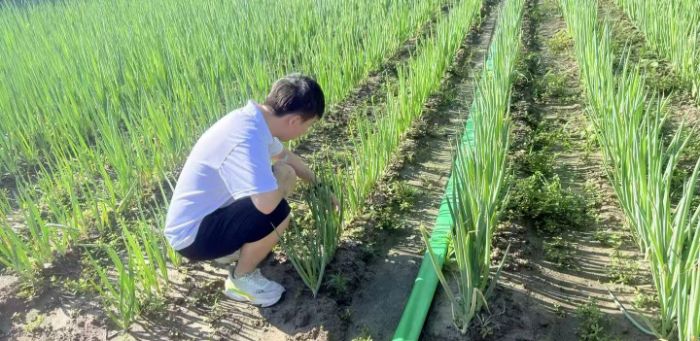 調(diào)研中,團隊成員不止于 “聽”,更重于 “行”。在蔥田,成員蹲下身子,觀察蔥苗長勢、查看土壤墑情,將理論知識與實際結合;香瓜、西瓜棚內(nèi),仔細記錄植株健康狀況、果實發(fā)育進程 。親身參與農(nóng)事,讓大家體會到農(nóng)業(yè)生產(chǎn)的不易,也加深了對 “粒粒皆辛苦” 的理解,在實踐中厚植知農(nóng)愛農(nóng)情懷,把擔當融入每一次彎腰、每一回觀察。